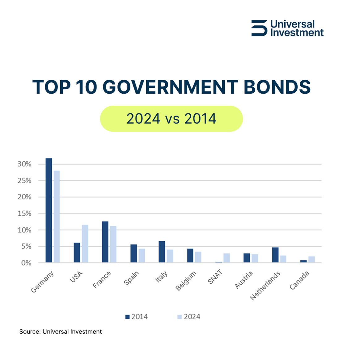 - Germany remains the most important issuer for institutional investors - but US Treasuries are catching up
