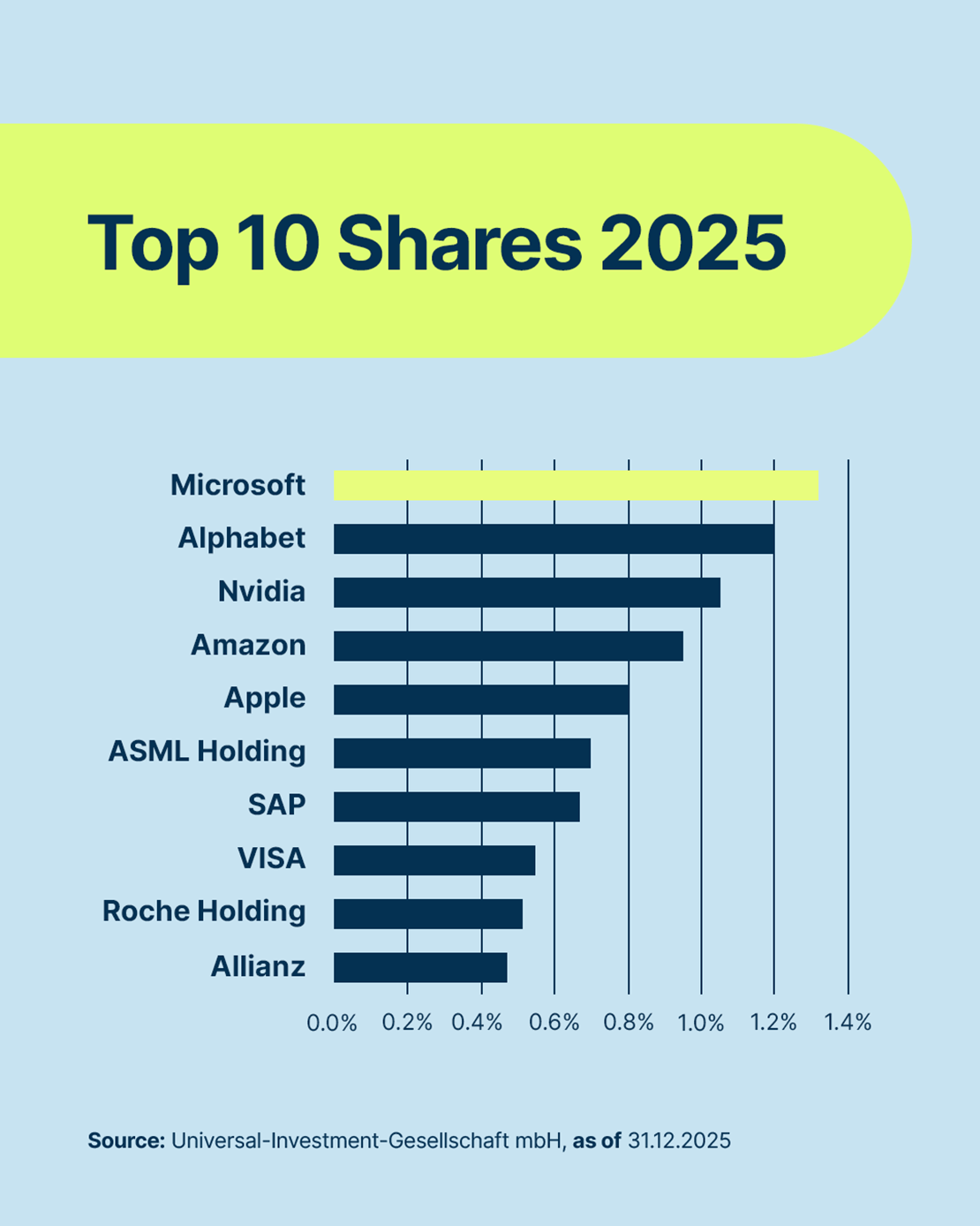 "Against the backdrop of dynamic geopolitical developments, markets and professional investors alike appear to lack orientation. US companies continue to dominate, with only minor shifts visible so far. Whether 2026 brings more meaningful change remains to be seen. Global diversification is therefore a central issue for most investment professionals and 2026 is shaping up to be an exciting year," explains Mathias Heiß, Head of Universal Investment Germany.